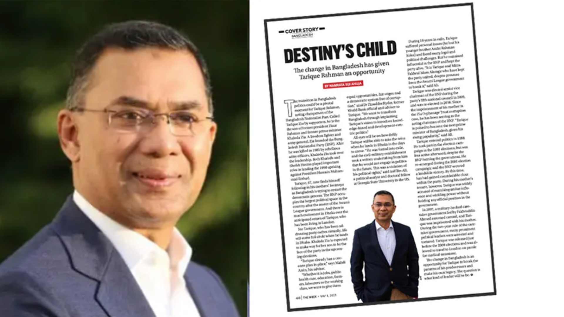 টাইম ম্যাগাজিনের সেই প্রতিবেদনে তারেক রহমানকে আখ্যা দেওয়া হয়েছে ‘Bangladesh’s Prodigal Son’ বা ‘প্রত্যাবর্তনকারী উত্তরাধিকারী’ হিসেবে। প্রতিবেদনে বলা হয়েছে- কণ্ঠস্বর ভাঙা ও শারীরিক দুর্বলতা সত্ত্বেও রাজনীতিতে সক্রিয় ভূমিকায় ফেরার সংকল্প স্পষ্ট তারেক রহমানের। দেশে ফেরার কয়েক দিনের মধ্যেই তার মা ও বাংলাদেশের প্রথম নারী প্রধানমন্ত্রী খালেদা জিয়ার মৃত্যু তাকে ব্যক্তিগতভাবে ভীষণভাবে নাড়া দিলেও রাজনৈতিক দায়িত্ব পালনের ব্যাপারে তিনি অনড়।