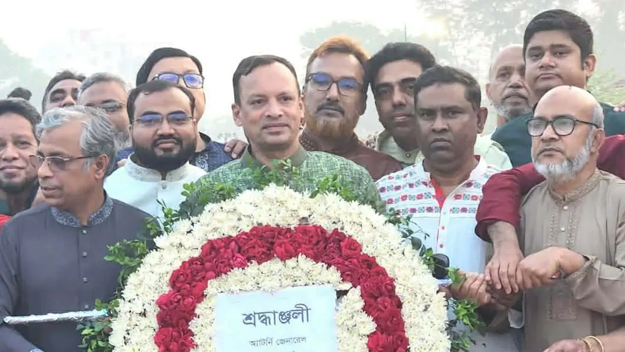 বৃহস্পতিবার সাভারে জাতীয় স্মৃতিসৌধে অন্যান্য আইন কর্মকর্তাদের নিয়ে অ্যাটর্নি জেনারেল শ্রদ্ধা নিবেদন করেন।
