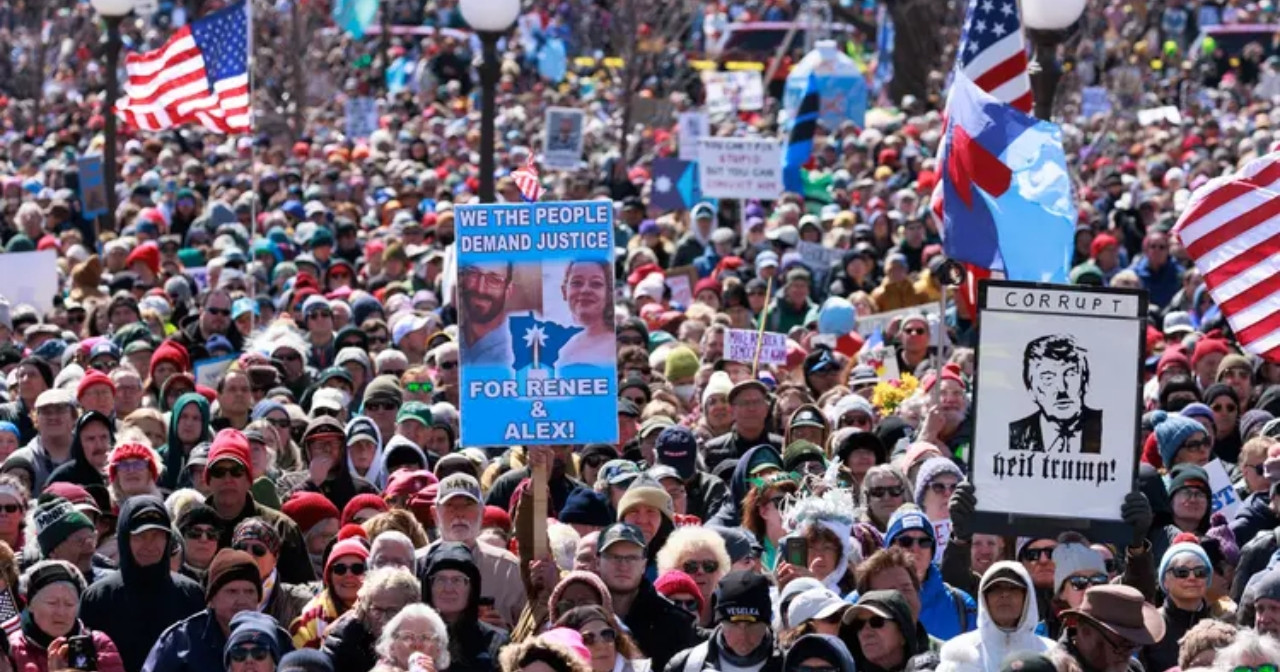 আন্তর্জাতিক ডেস্ক: যুক্তরাষ্ট্রের প্রেসিডেন্ট ডোনাল্ড ট্রাম্পের বিরুদ্ধে ‘নো কিংস’ বিক্ষোভে অংশ নিয়েছেন প্রায় ৮০ লাখ মানুষ। স্থানীয় সময় শনিবার (২৮ মার্চ) রাস্তায় নামেন সাধারণ মানুষ। এতে প্রেসিডেন্ট ট্রাম্পের নেতৃত্বের প্রতি নিজেদের ক্ষোভ প্রকাশ করেন।