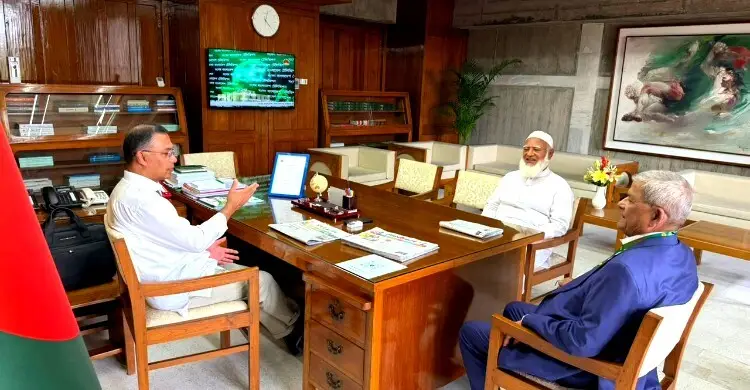 নিজস্ব প্রতিবেদক: প্রধানমন্ত্রী তারেক রহমানের সঙ্গে সৌজন্য সাক্ষাৎ করেছেন বিরোধীদলীয় নেতা ডা. শফিকুর রহমান। সোমবার (৩০ মার্চ) দুপুরে প্রধানমন্ত্রীর সংসদ সচিবালয় কার্যালয়ে তাদের সাক্ষাৎ হয়। এসময় বিরোধীদলীয় নেতাকে নিজ কার্যালয়ে স্বাগত জানান তারেক রহমান। সেই সঙ্গে আলাপ শেষে বিরোধীদলীয় নেতাকে তার সংসদ সচিবালয়ের কার্যালয়ের দিকে খানিকটা পথ এগিয়ে দেন প্রধানমন্ত্রী।