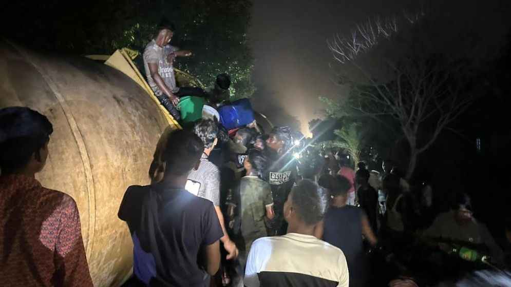 খোঁজ নিয়ে জানা যায়, দুর্ঘটনার পরপরই আশপাশের মানুষ বালতি, পাতিল, জগ ও প্লাস্টিকের গামলা নিয়ে ঘটনাস্থলে ছুটে আসেন। ট্রেনের উল্টে যাওয়া ওয়াগন থেকে মাটিতে পড়া তেল সংগ্রহ করে বাড়ি নিতে শুরু করেন তারা।